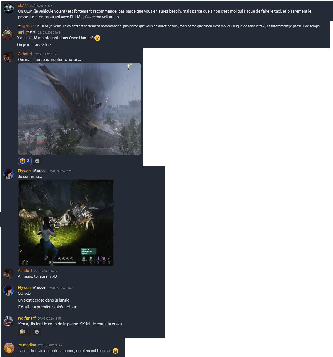 Ashdurl : *regarde plus attentivement* Toi aussi, tu as un véhicule en vrac ?...Un ULM ?